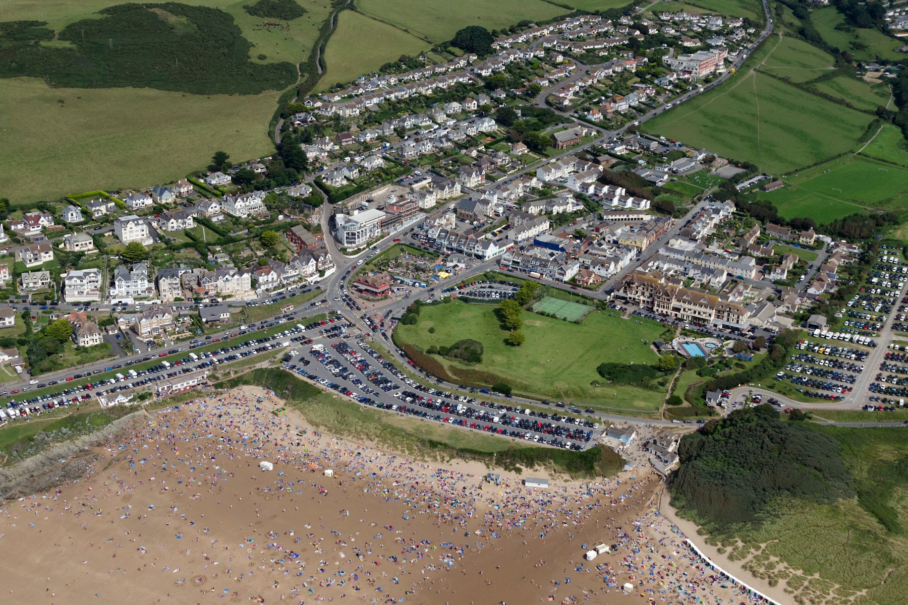 My wife bravely volunteered to drive our campervan the 400 miles from our home in Norwich to Perranporth whilst I had the fun of flying down in what should have been considerably less time, I didn’t know much about the unpredictable vagaries of the weather in the South West Peninsula but quickly found out! The weather forecast had been ideal for my trip but the further West I flew, the murkier the conditions became until the air traffic controller at Exeter informed me that there was fog at Perranporth and that it might be wise to divert. My aircraft spent the next four days, squeezed into a hangar, courtesy of the wonderfully friendly people at Bodmin airfield whilst we waited for the weather to improve. Tuesday 23rd August was a gorgeous sunny day so I took off from Bodmin Airfield and headed north east until I reached the north Devon coast at Combe Martin. From there, I flew at a leisurely 60mph along the Devon coast until I arrived at the beautiful and hugely busy Woolacombe. I’m used to seeing crowded beaches around my local East Anglia but this was in a different league! There were clearly, tens of thousands of people enjoying a day on the sunny beaches along Woolacombe Bay.