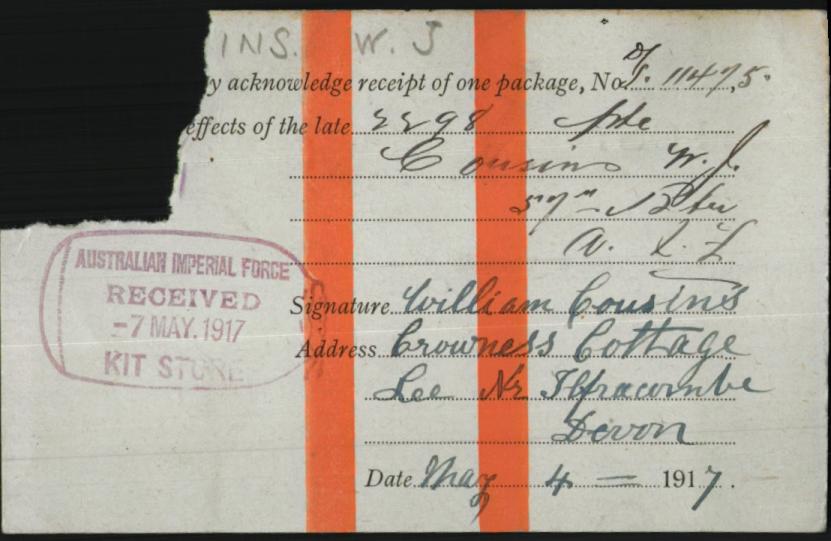William John Cousins was the eldest son of William and Charlotte Cousins, born in Mortehoe in 1884.