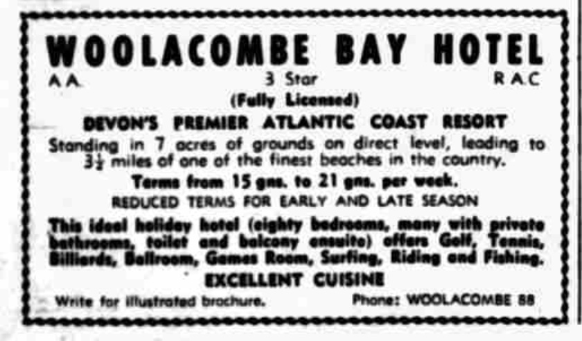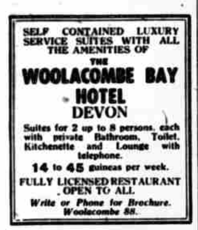 In 1935 Miss Crowhurst was the new manager of the hotel and by 1939 the hotel had been enlarged to accommodate up to 180 residents, reflecting the increased number of tourists wishing to stay in Woolacombe in the heyday of British seaside resorts.  It was at this time that war was announced and the British army commandeered the hotel. It became home to the 4th County of London Yeomanry, who were based in Woolacombe to protect from invasion.