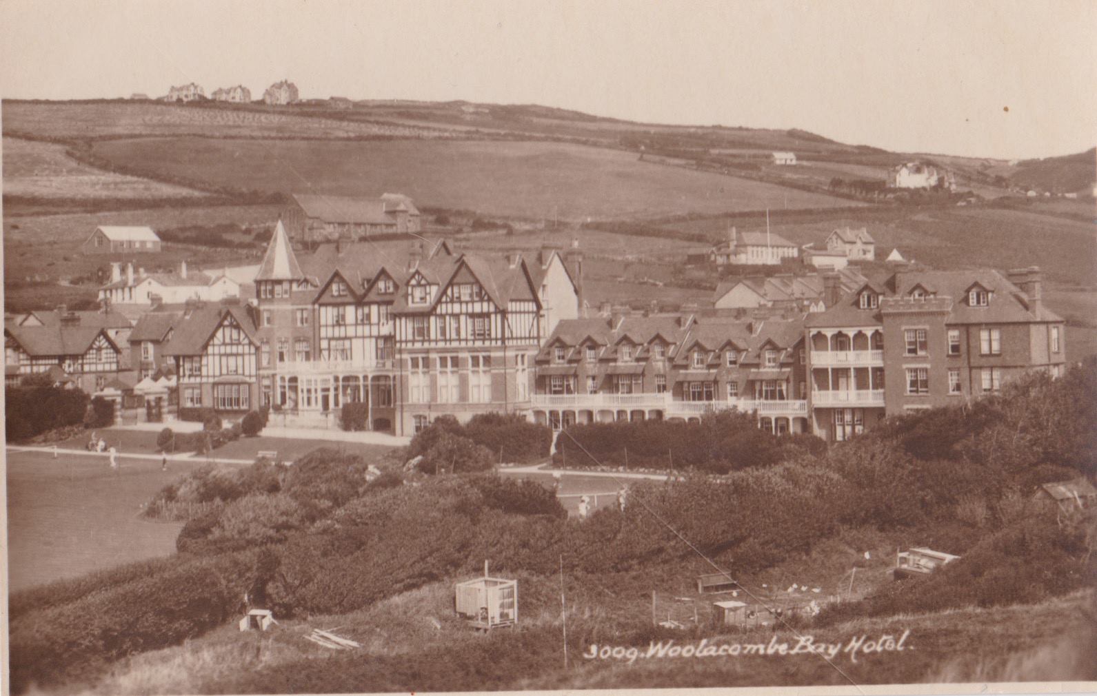 The Woolacombe Bay Hotel was constructed in 1887, and was initially called the “Shakespeare Hotel”, before it was renamed the Woolacombe Bay. Photographs of the Hotel under construction show, at the time, it was surrounded by empty fields for some distance, highlighting just how small Woolacombe was before the late 1800’s and how speculative these developments were.