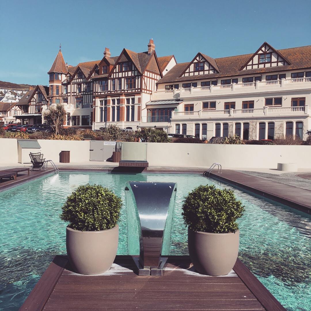 This work resulted in the Hotel appearing much as it does today and added several notable features – including the ballroom, which showcased the first sprung floor in the West Country. The hotel also retains large grounds facing towards the beach, with its own swimming pool and tennis courts, as well as a private path leading down towards the beach near the old Lifeboat House. In 2013 the swimming pool was renovated creating the Bay Lido
