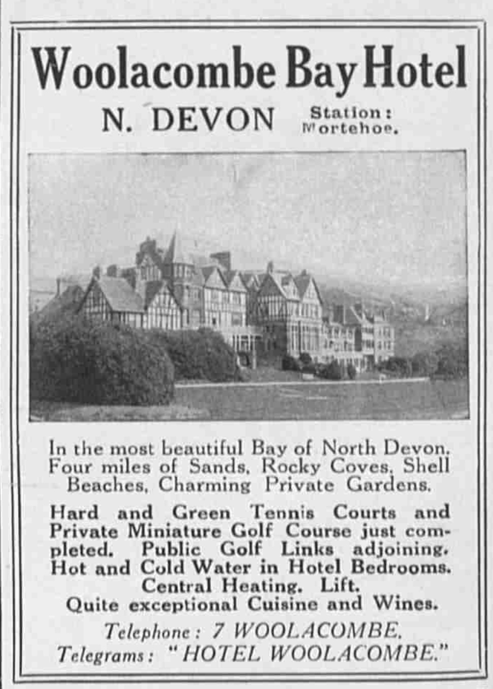 Early pictures show that many parts of the existing building have retained their original features. The hotel has enjoyed a long and colourful history, and much of its traditional charm still remains today. In 1895, Rosalie Chichester of Arlington Court granted tenancy of The Woolacombe Bay Hotel to Arnold Perret, who bought the tenancy in 1899.