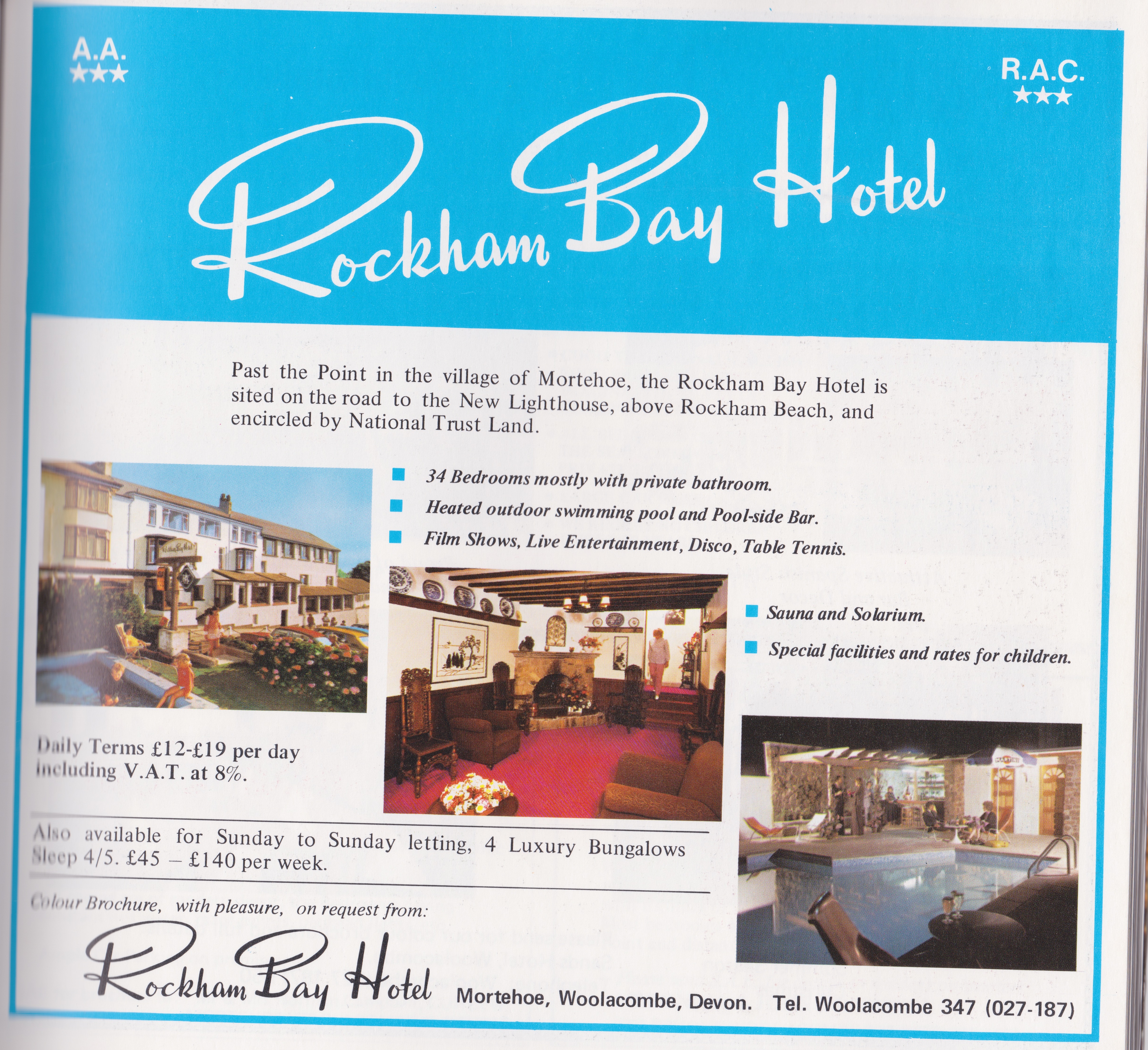 By 1955 the hotel had become known as The Rockham Bay Hotel, and was described in The Sphere newspaper by a journalist who had stayed there: “Another night was spent in a small but compact bedroom at Rockham Bay Hotel near Mortehoe, formerly named Hillside Cottage Hotel.
