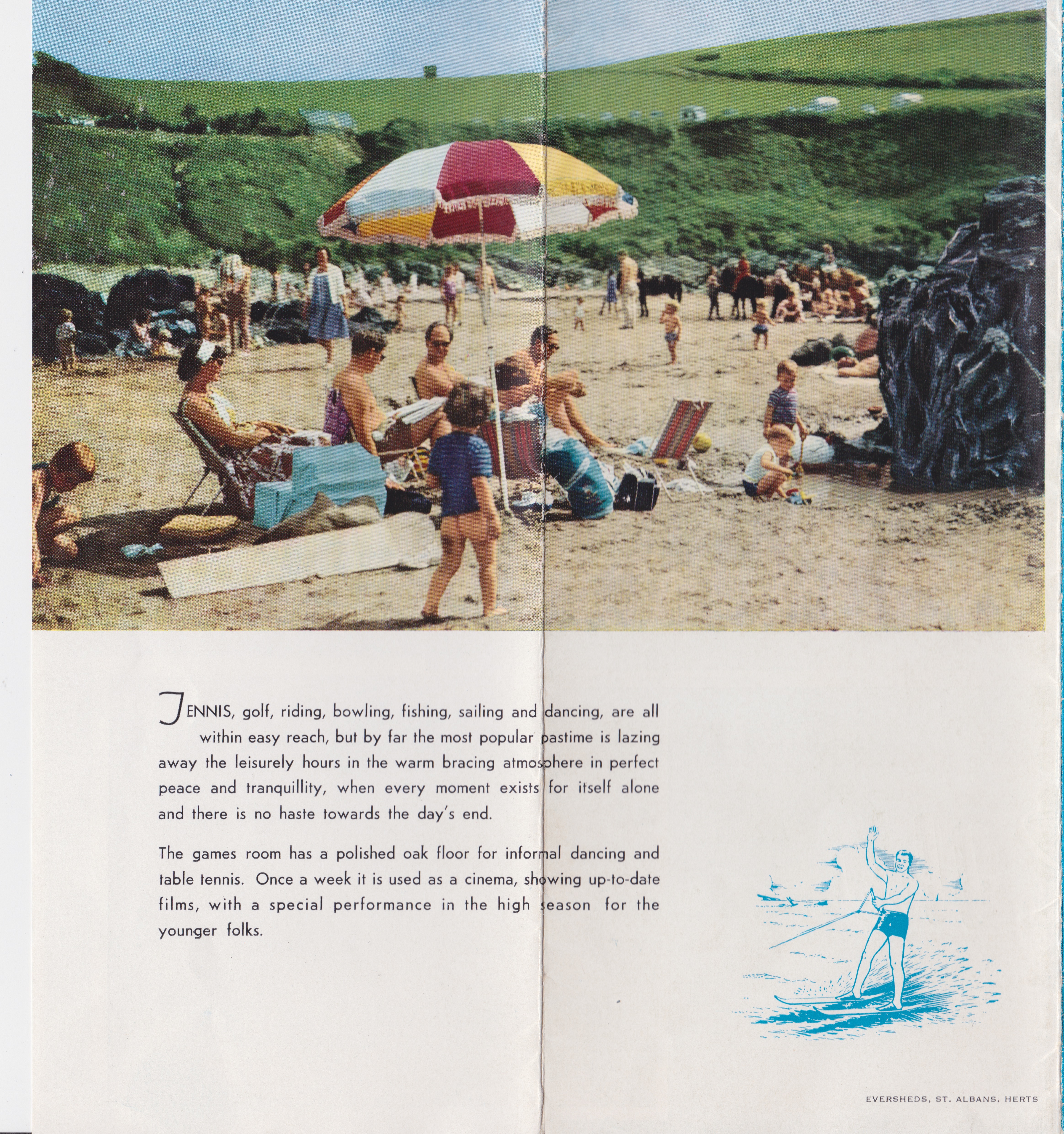 the hotel it has grown from some dozen bedrooms to forty. Apart from its compactness and reputation for catering, Rockham Bay Hotel draws clientele as much as anything for its friendly informality, It is one of the those all too rare British hotels where one finds oneself making new friends soon after arrival”