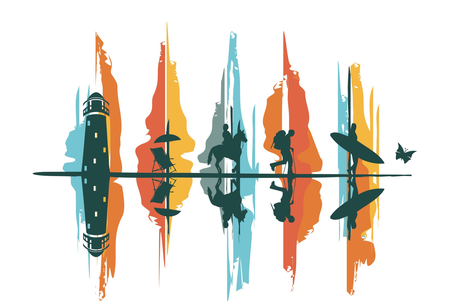 The lighthouse represent’s two elements, firstly and perhaps the most obvious for Woolacombe & Mortehoe is that of Bull Point Lighthouse, which is an iconic and important part of the coastline. The second reason I wanted to include a lighthouse is to represent the coastline generally. The shipwrecks, smugglers, the trade routes are all an important association with this stretch of North Devon Coastline and the lighthouse felt a very symbolic way of including this in the logo.